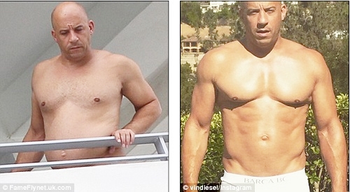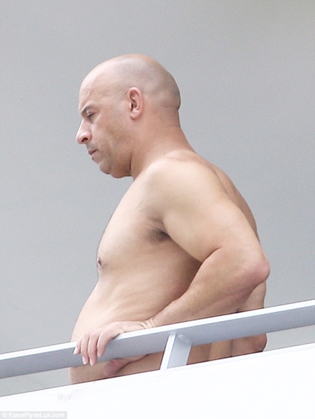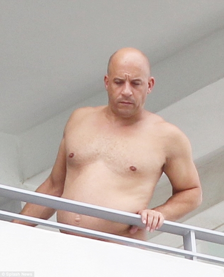 The Fat and the Furious...muscleman, Vin Diesel, shows his softer side as he whips his shirt off in Miami.