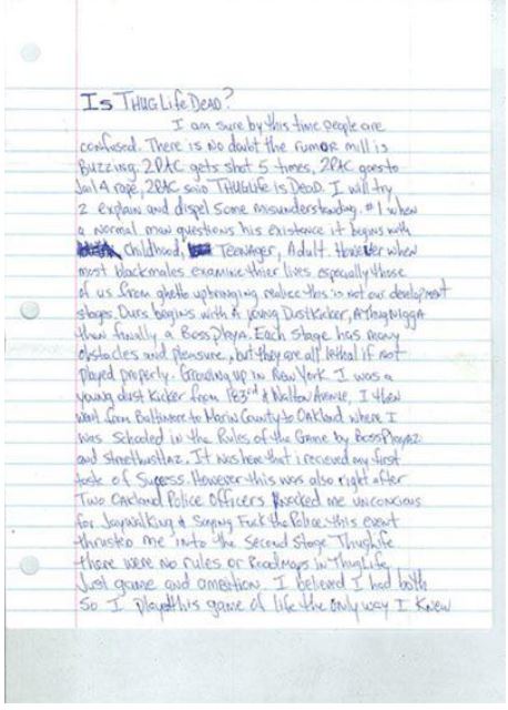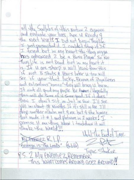 penned by Tupac Shakur shows the legendary gangster rapper was ready to