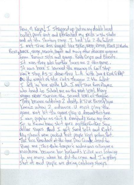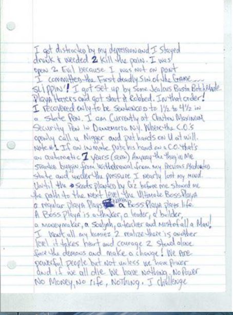 Tupac Umaru Shakur while in prison, detailing his plan to turn a new